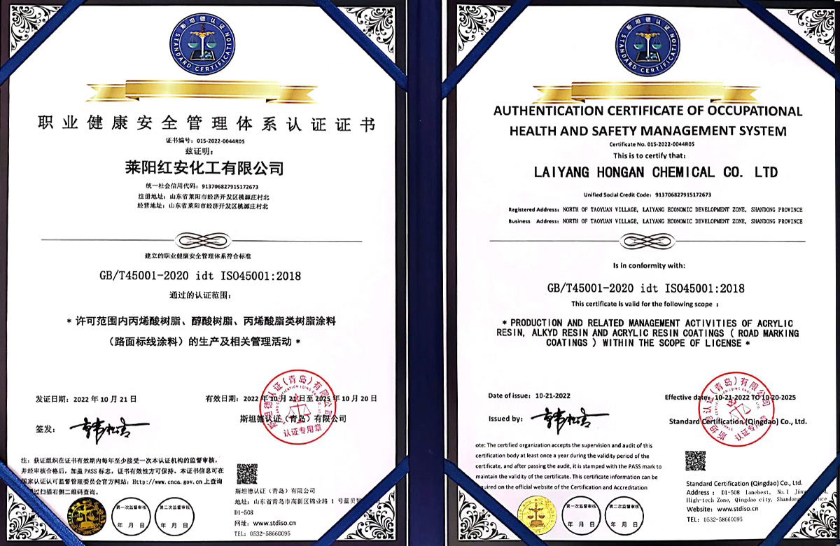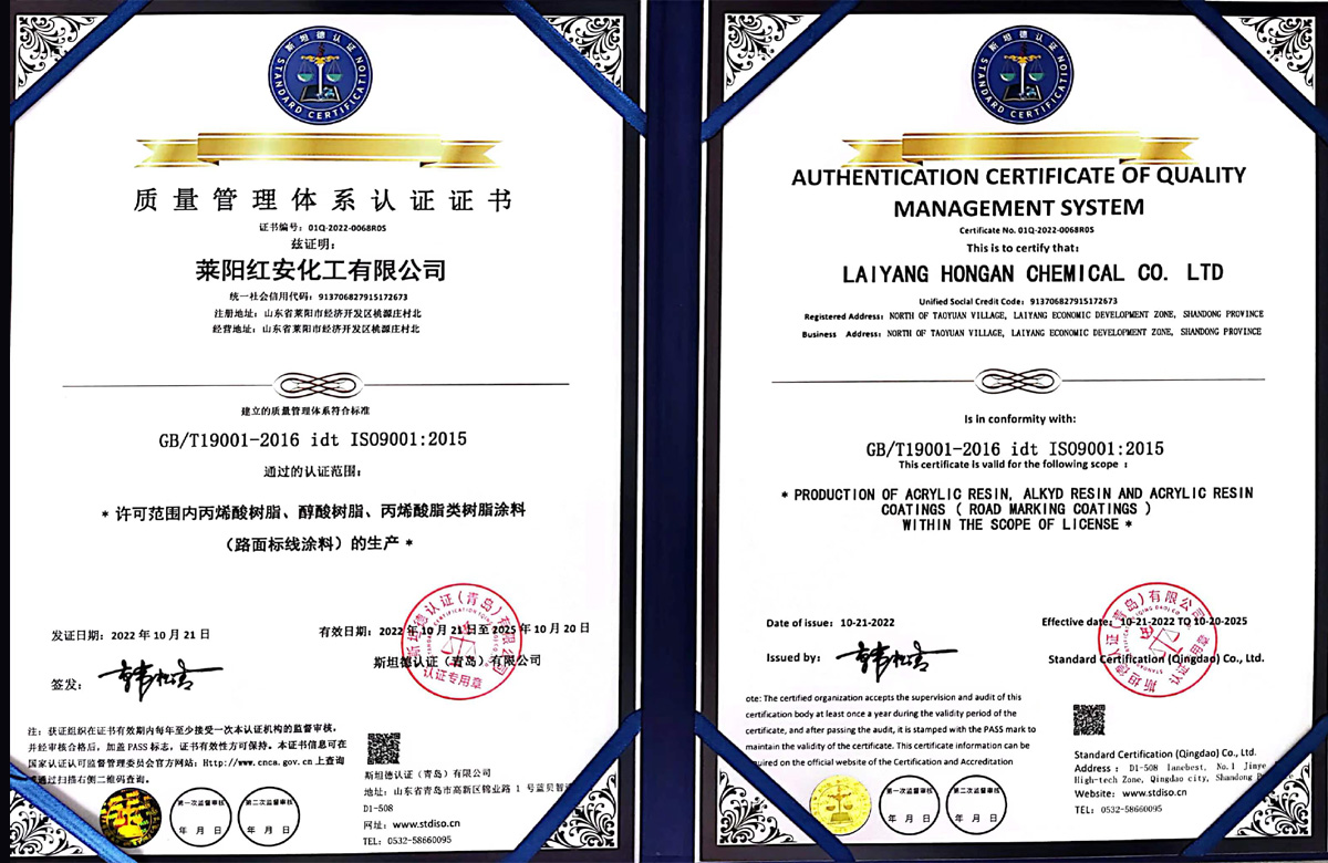 紅安化工經過近二十年的打造和積淀,現已建成了一家專業(yè)研制生產涂料合成樹脂的綜合型工廠,位于山東省半島的腹地--萊陽市。公司已通過了三體系認證,即ISO9000質量管理體系認證和環(huán)境、職業(yè)健康安全管理體系認證,并獲得了六項國家發(fā)明專利,八項實用新型專利;19年榮獲山東省高新企業(yè)稱號,22年通過了復審;22年榮獲山東省瞪羚企業(yè)稱謂,還有其他一些榮譽稱號不再一一敘說。 公司現有樹脂合成反應釜29套,各類樹脂年生產能力約8萬噸,具有完善的檢測儀器和應用服務條件。